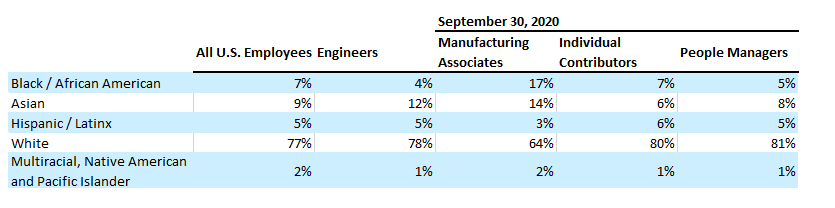 At Sept. 30, 2020, our U.S. employees had the following race and ethnicity demographics: