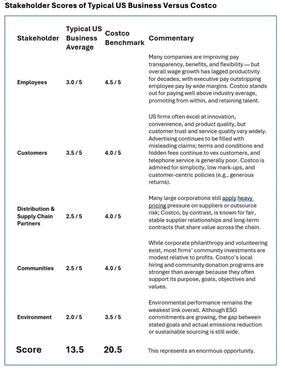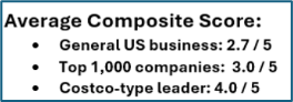 Using Costco as a benchmark, I asked ChatGPT 5 to evaluate the average US business as well as the top 1,000 companies. Both the average company